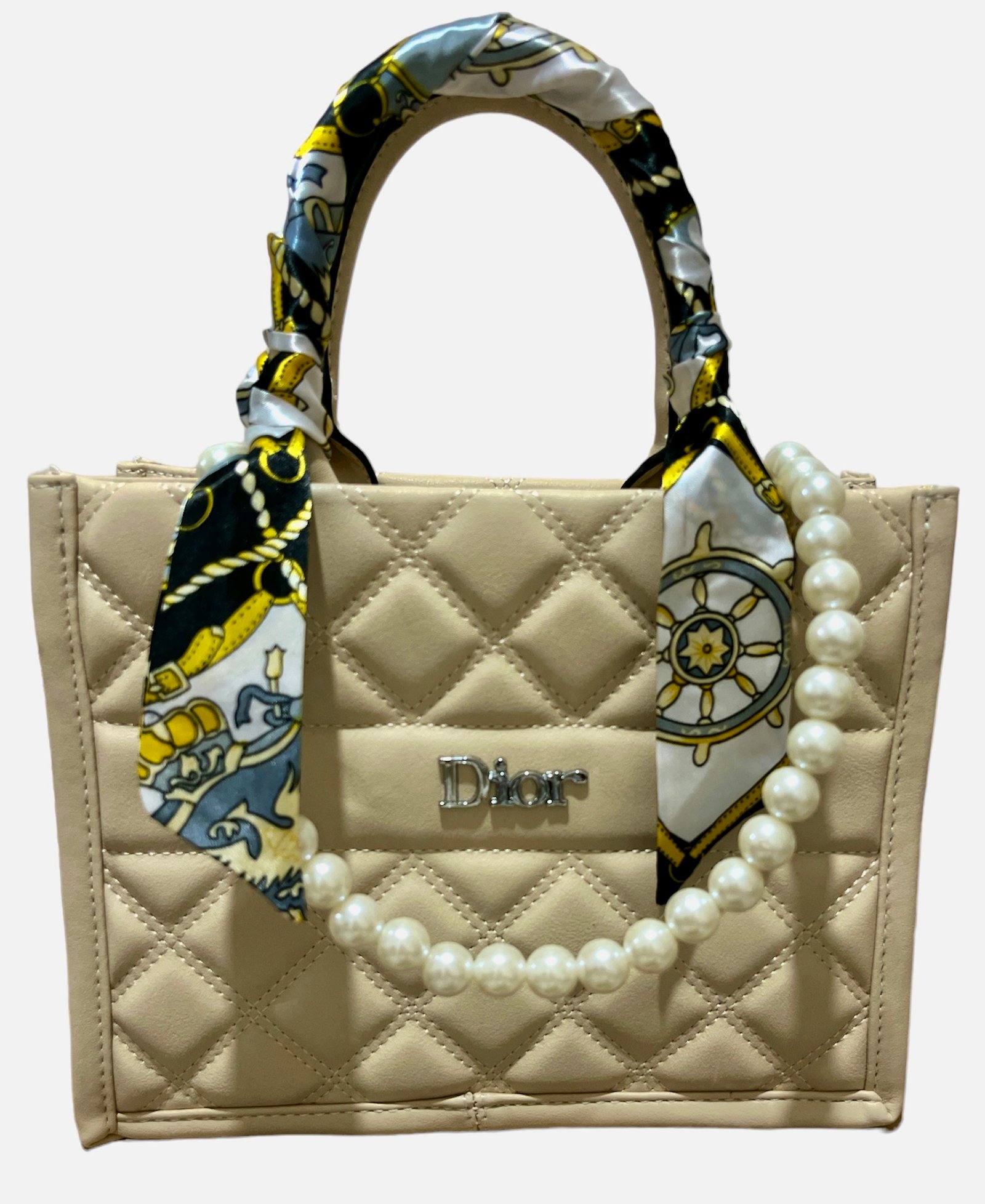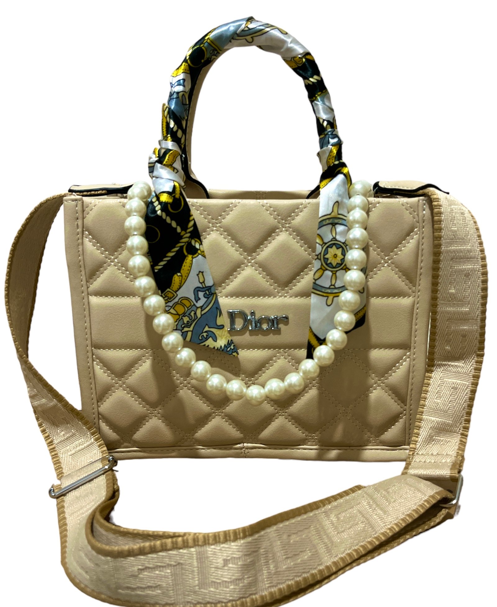 Τσαντάκι DIOR με λουράκι όμου και χειρός , με πέρλα ανάμεσα στα δύο χερούλια.